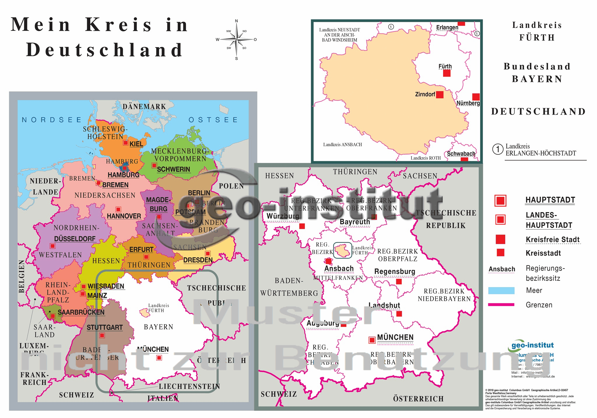 „Vom Heimatort zur Welt“ – das ist das Konzept unserer Atlanten, egal ob DIN A3, DIN A4 Schüleratlas, Folienatlas oder digitaler Atlas. Gerade für den Unterricht in Grundschulen, den Klassen 5 und 6 oder an Förderschulen ist diese Art der Darstellung am Übersichtlichsten. Jeder Atlas wird für jede Schule individuell erstellt! Lernen Sie den chronologischen Aufbau unserer Atlanten für Bayern am Beispiel Mittelfranken kennen: