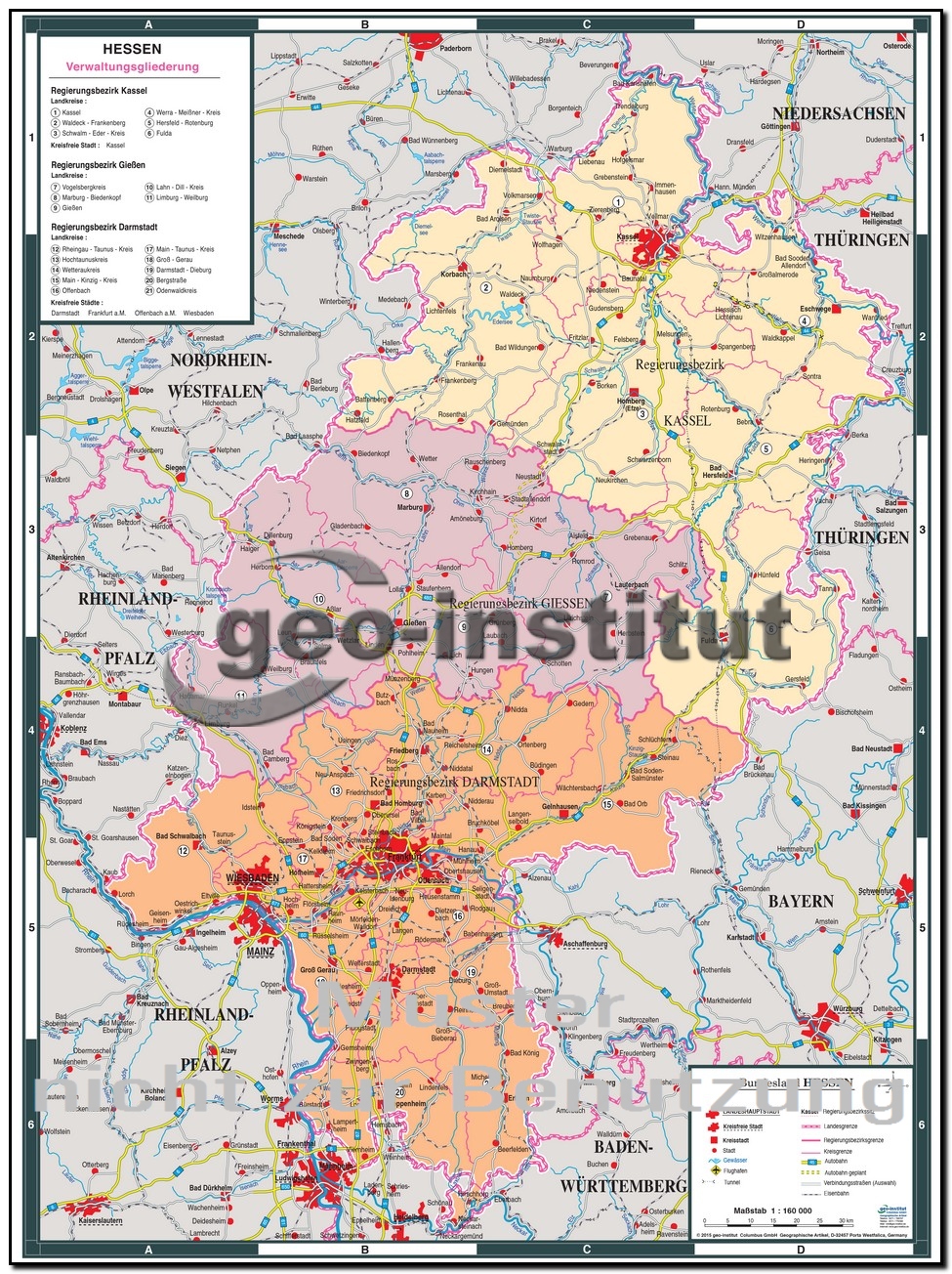 | Bundesland Hessen | Größe: ca. 123 x 168 cm | 1 :160.000 |